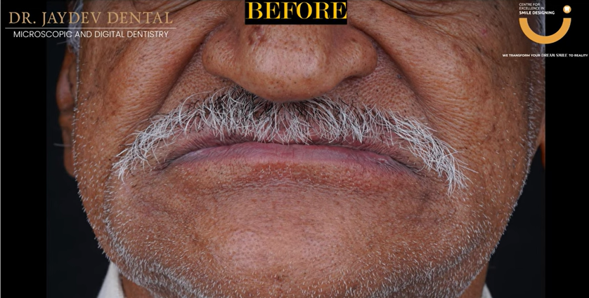 A 75 year old patient came to Dr. Jaydev Dental, Hyderabad, after wearing dentures for 10 to 15 years. He wanted a permanent solution instead of his removable dentures that never fit properly. His dentures made eating uncomfortable and he wasn’t happy with how they looked. Years of wearing dentures had caused his jawbone to shrink and his bite to collapse, which made planning his treatment more challenging.