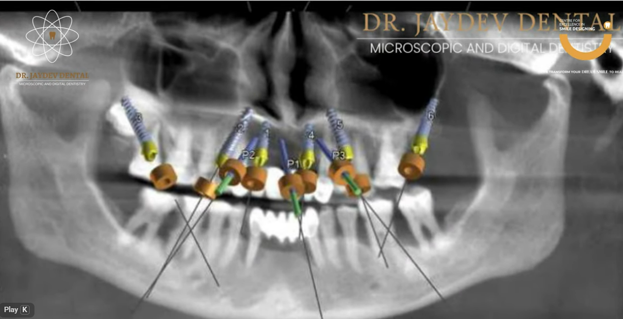 Using a customized 3D surgical guide, implants were strategically placed through a guided approach rather than relying on conventional freehand methods. This significantly improved accuracy and reduced surgical invasiveness.